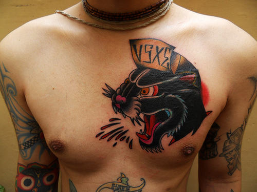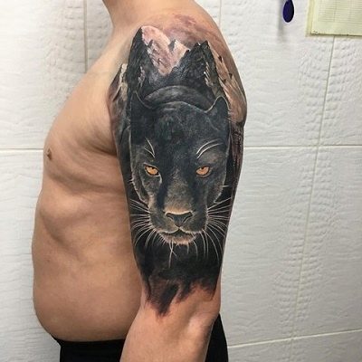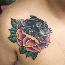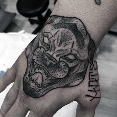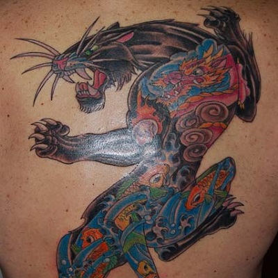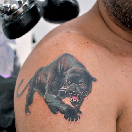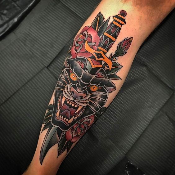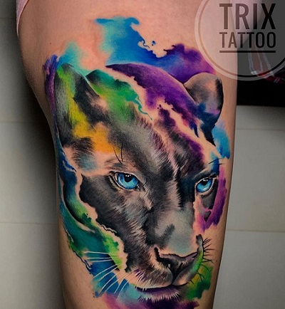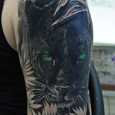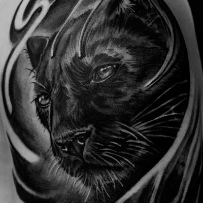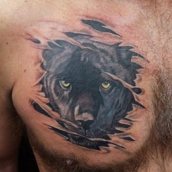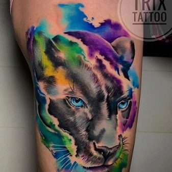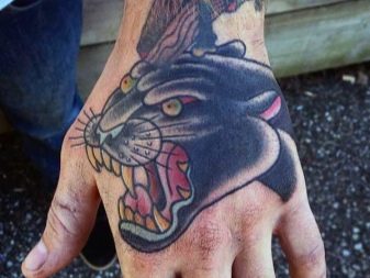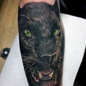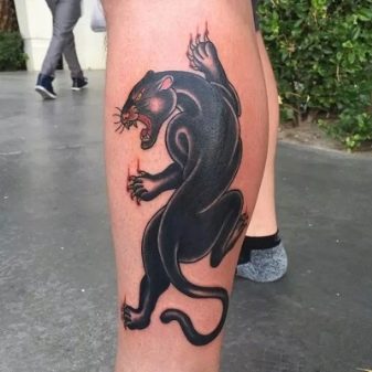 النمر الأسود حيوان رشيق جميل إلى حد ما. وغالبًا ما يتم عمل وشم الرجال باللونين الأسود والأبيض. لكن في نفس الوقت ، يمكن إضافة أخرى على شكل أصفر ، أخضر ، أزرق ، أحمر. نادرًا ما يمكن العثور على أعمال شغب من الألوان عند تطبيق مثل هذا النمط. من حيث الأنماط ، فإن الخيارات التالية هي الأنسب: