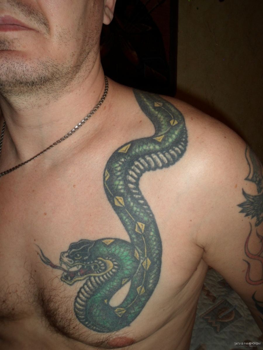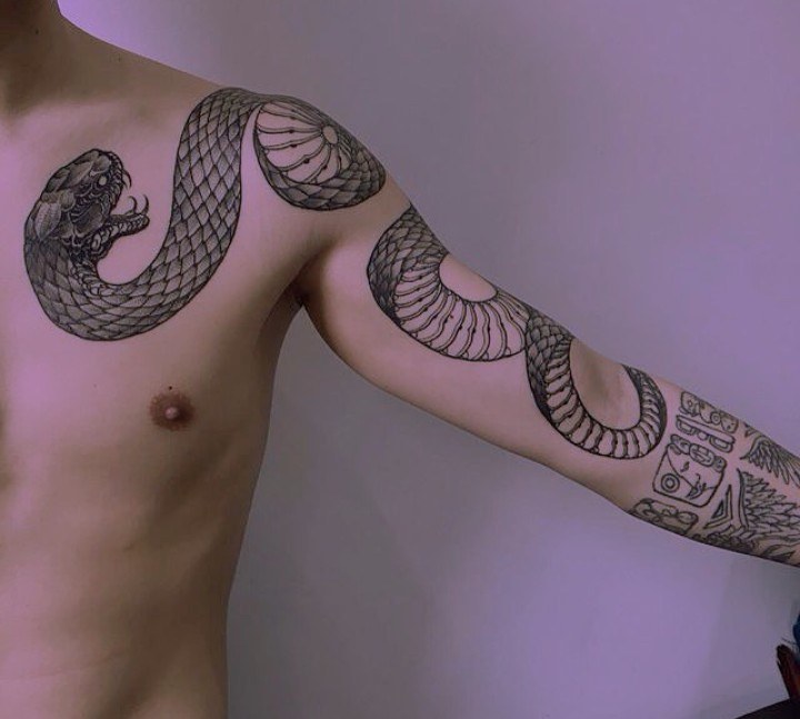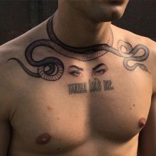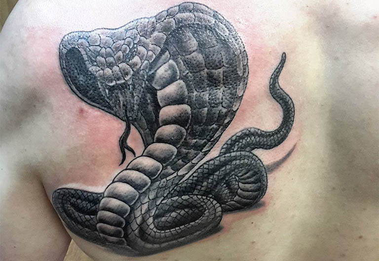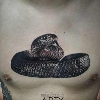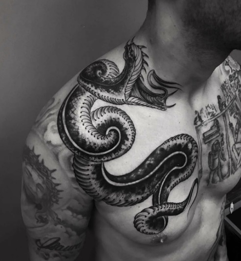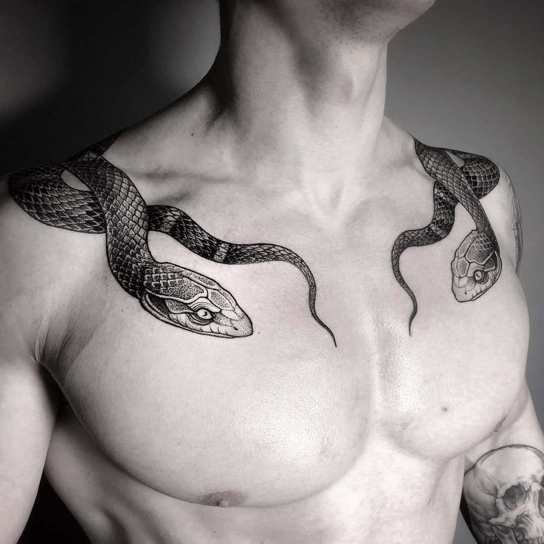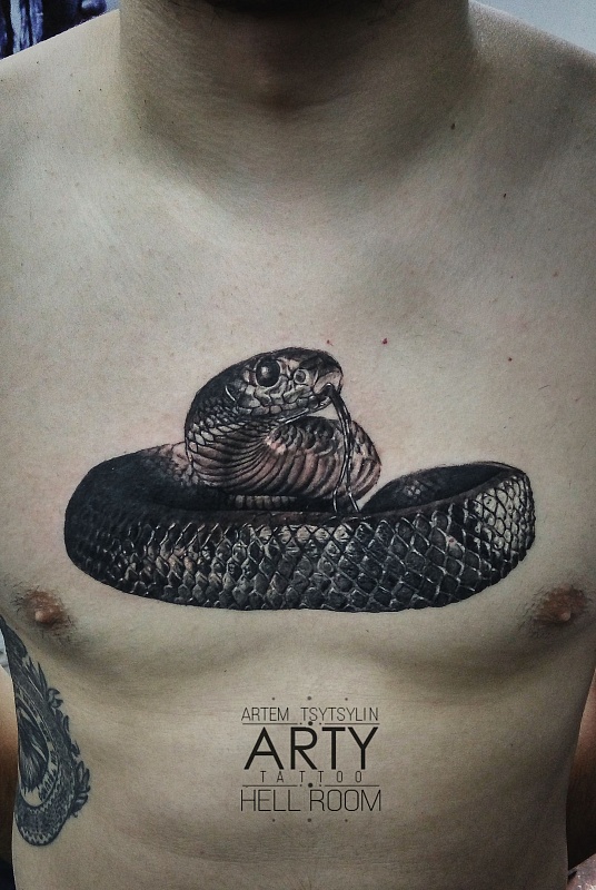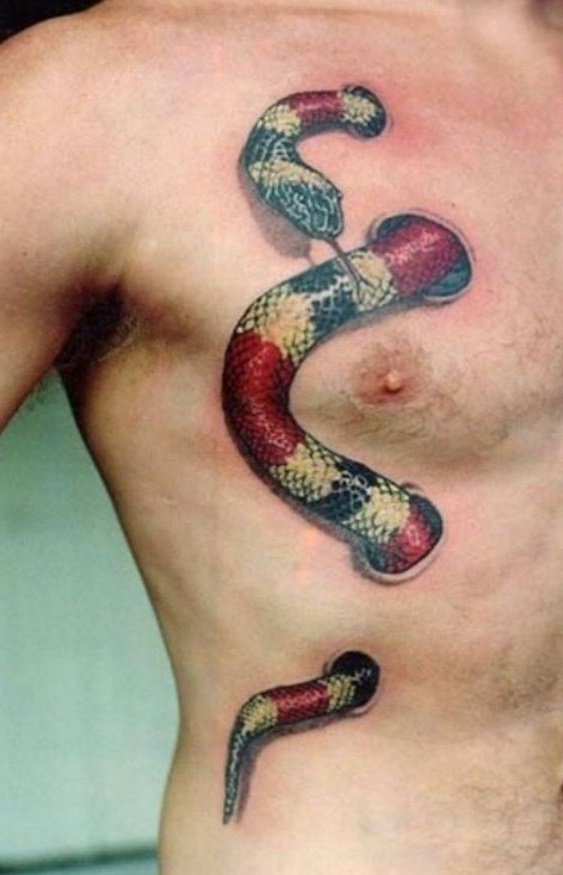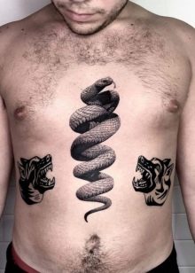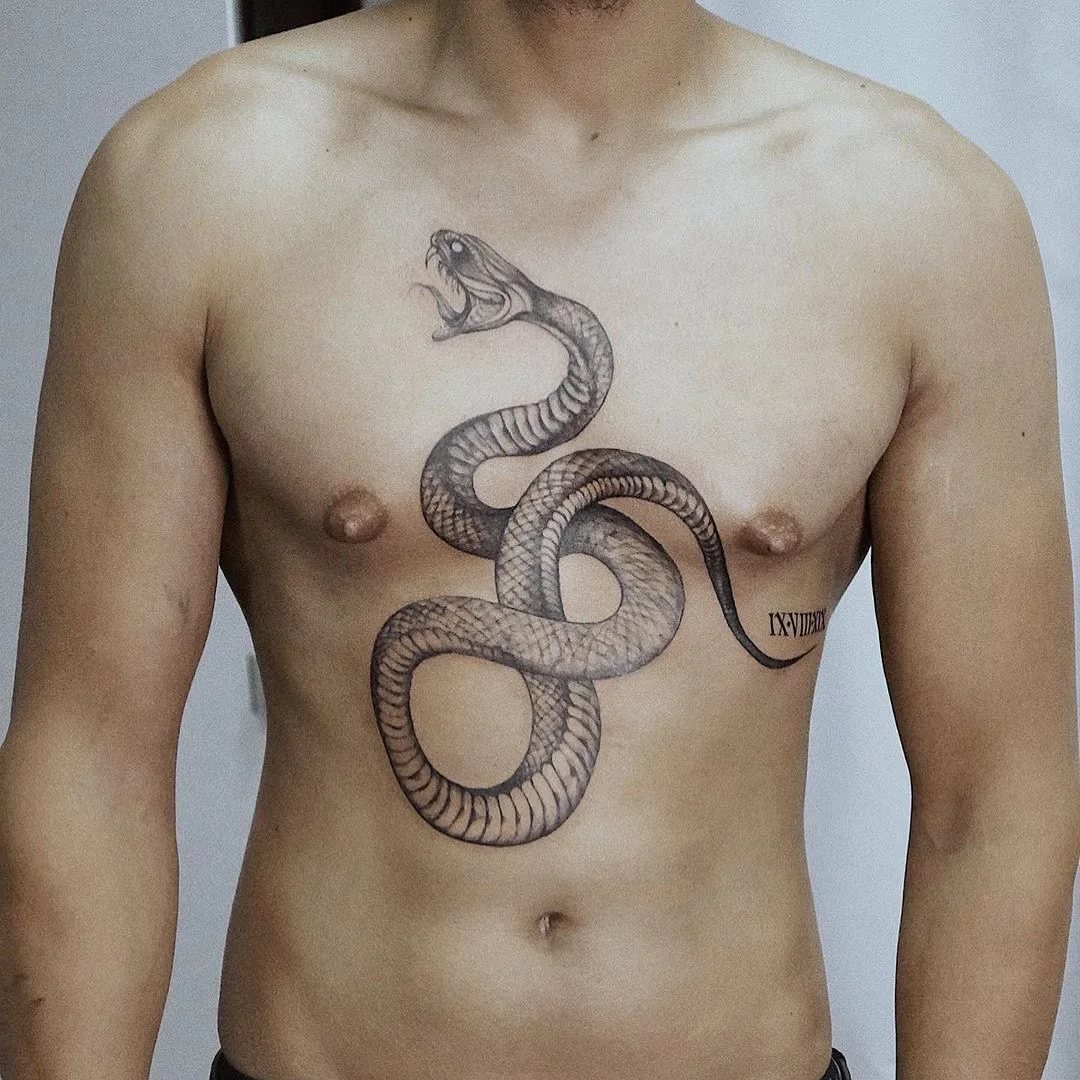 هناك العديد من الأمثلة على وشم الثعبان المثير للاهتمام الذي يمكن وضعه على عظم القص أو البطن.