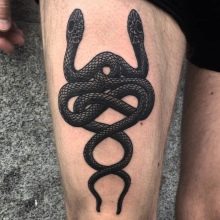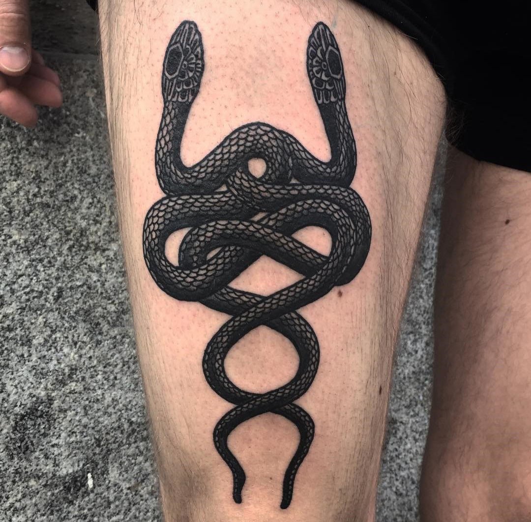 - الولاء. يمكن أن يعني الوشم الذي يصور ثعبان بأجساد متشابكة الولاء والولاء لشخص ما. كقاعدة عامة ، يتم حشوهم في كرة.