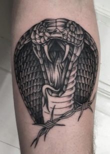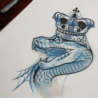 - تاج. في أغلب الأحيان ، يتم رسم التاج على رأس الكوبرا. عادة ما يعني هذا الوشم رغبة الشخص في الحصول على وضع اجتماعي معين.