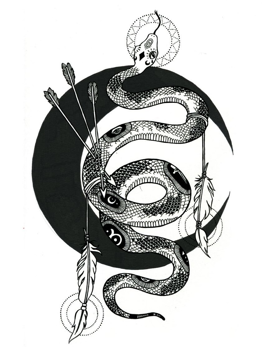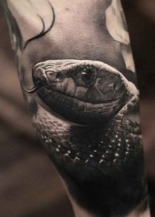 - أسود. عادة ما يكون لهذا الوشم معنى سلبي. عادة ما يرمز إلى الرغبة الشديدة في كل شيء مظلمة وعالم آخر. بالإضافة إلى ذلك ، يمكن أن تكون صورة الثعبان بالأبيض والأسود رمزًا للانتقام والخطر.