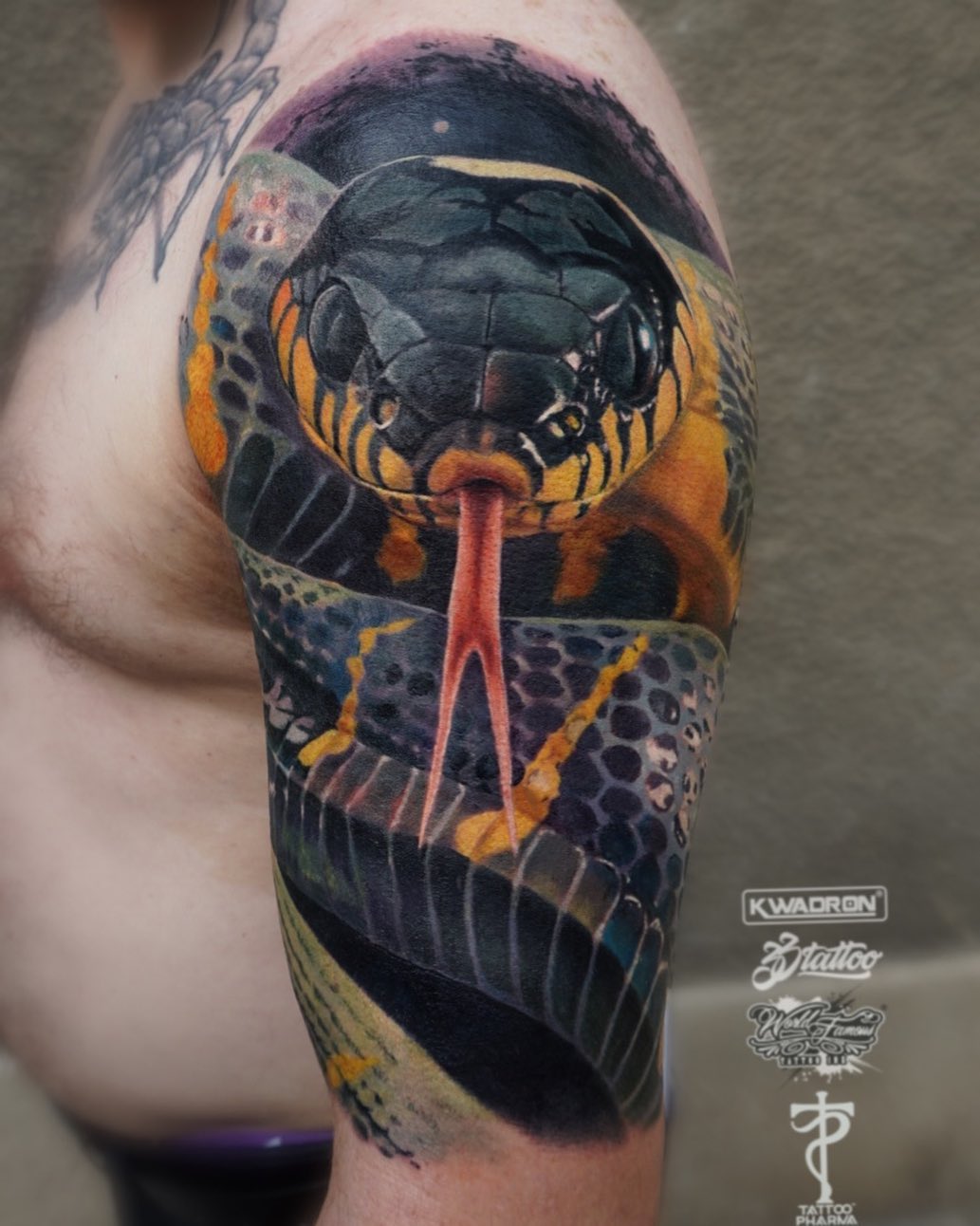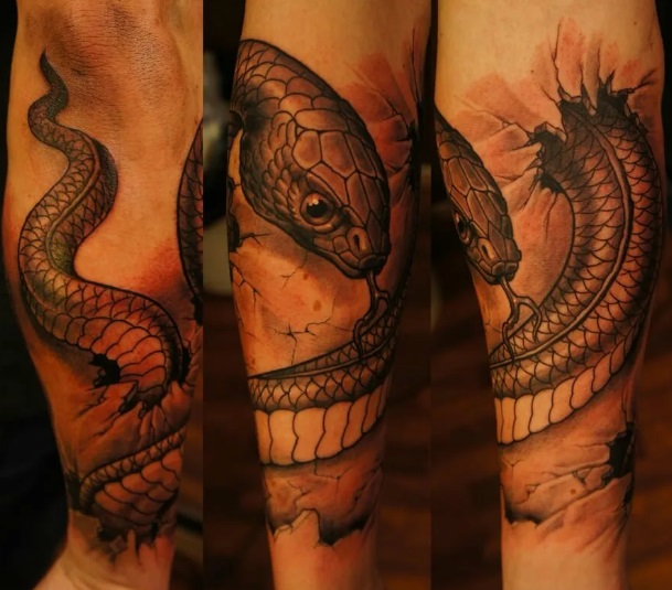 يحب العديد من الرجال وشم الثعبان لرمزيتها وجمالها. هذا هو السبب في وجود مجموعة كبيرة ومتنوعة من الخيارات المثيرة للاهتمام لمثل هذه الأوشام.