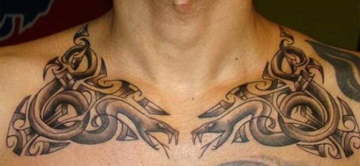 - أسلوب سلتيك. تبدو الأوشام ذات الطراز السلتي مذهلة ومثيرة للاهتمام. يمكن طباعة هذا النمط على الترقوة أو الرقبة. عادة ما تكون صورة الثعبان محاطة بأنماط مختلفة. يمكن أن تكون أحادية اللون أو ملونة.