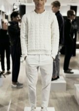 عموما، من السهل اختيار الملابس للكنزة البيضاء ، الشيء الرئيسي هو أنها تتناسب مع الأسلوب واللون... بالإضافة إلى ذلك ، يتم دمج جميع الألوان تقريبًا مع اللون الأبيض ، ولكن من الأفضل دمجها مع الظلال الداكنة والمشرقة حتى لا تبدو الصورة باهتة.