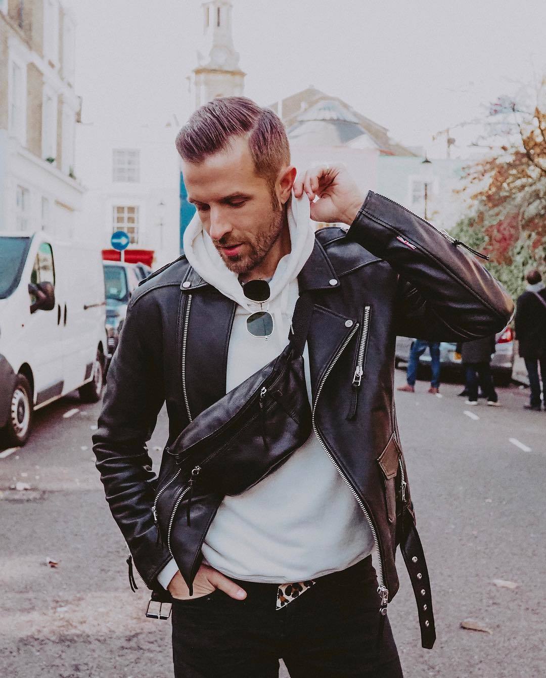 - يمكنك أيضًا ارتداء معطف أو سترة راكب الدراجة النارية فوق قميص من النوع الثقيل ، على سبيل المثال ، مع الجينز أو السراويل الضيقة.