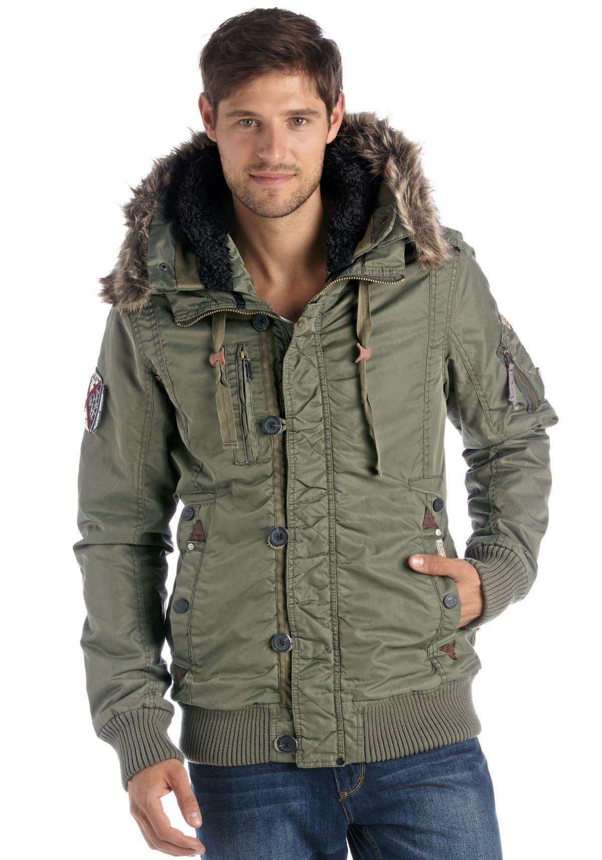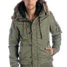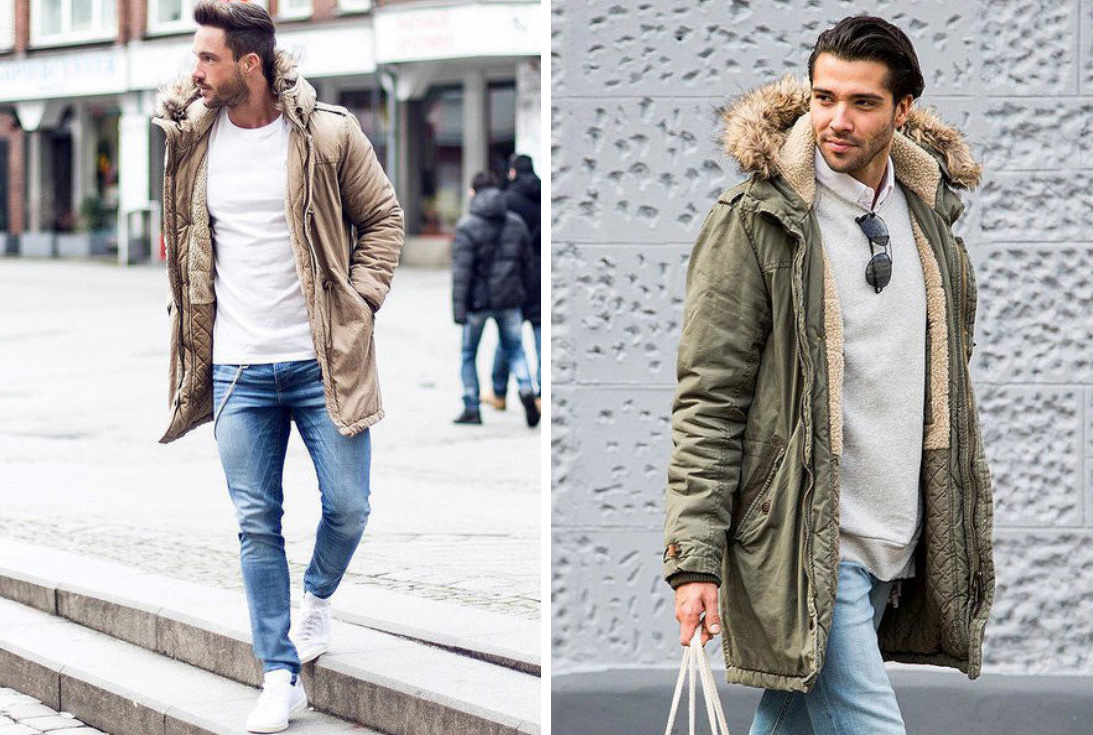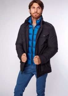 سترة بنمط عسكري - حل مثير للاهتمام لأولئك الذين يرغبون في جذب الانتباه والحصول على لقب رجل أنيق. تم تجهيز معظم الموديلات بقماش من الفرو. يمكنك الجمع بين الملابس ذات الأسلوب الرياضي ، الجينز. من الأفضل اختيار أحذية مثيرة لمثل هذه السترة على شكل أحذية رياضية وأحذية رياضية.