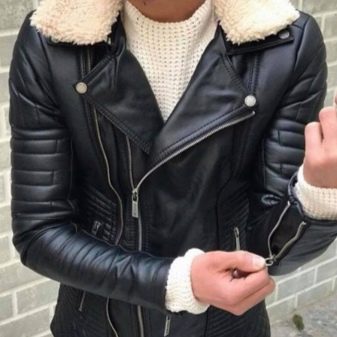 السترة الجلدية مثالية لمظهر أنيق. يُعتقد أن كل رجل يجب أن يكون لديه سترة جلدية سوداء في خزانة ملابسه. سيبدو جيدًا عند إقرانه ببدلة كلاسيكية. يعد نظام الألوان البني أو الأسود مفيدًا للجميع في أي مناسبة. لجعل القوس أكثر تشويقًا ، يمكنك اختيار نموذج به مسامير أو زخارف أو رقع.