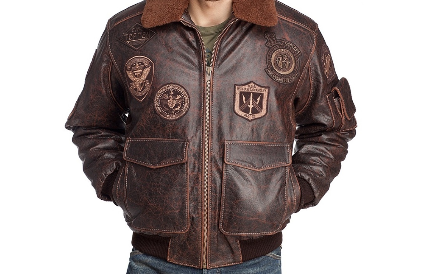 في البداية ، تم حياكة سترة الانتحاري حصريًا من الجلد الطبيعي ، خاصة من الجاموس. كان السترة ذات جيوب رقعة لم يتم عزلها لأسباب مبدئية. الحقيقة هي أنه وفقًا للميثاق ، لم يكن من المفترض أن يحتفظ الطيارون بأيديهم في جيوبهم. اليوم هناك العديد من الانحرافات عن المعايير الأصلية.