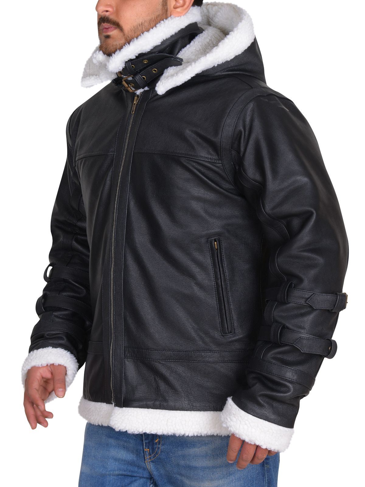 - يبلغ طول السترة تقريبًا الورك ، وفي الجزء السفلي توجد أحزمة إضافية حتى لا تهب الرياح من الأسفل.