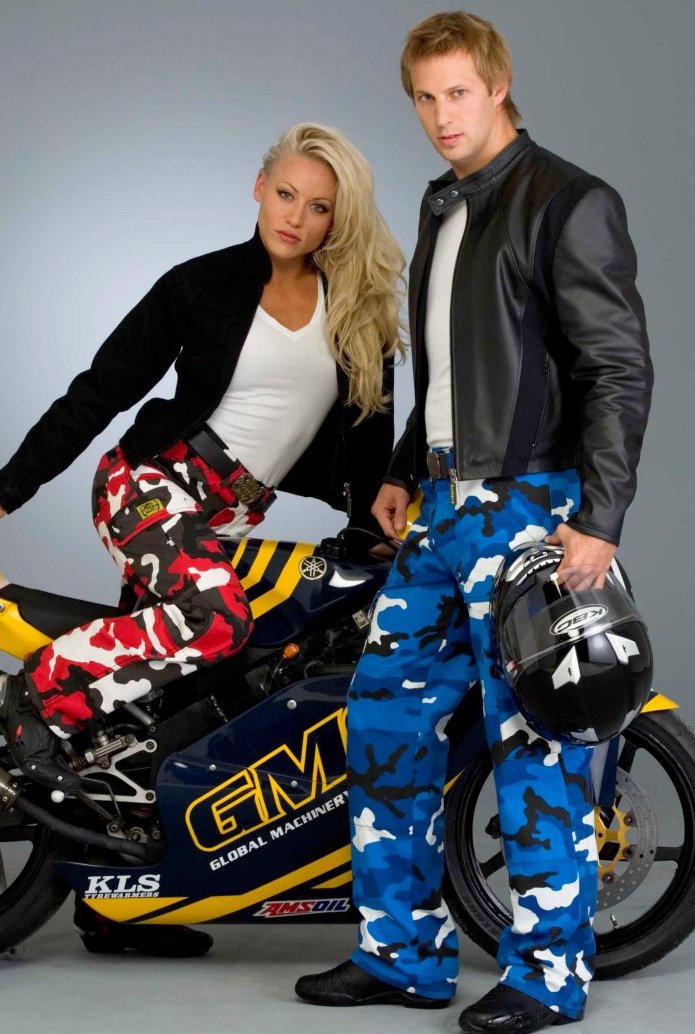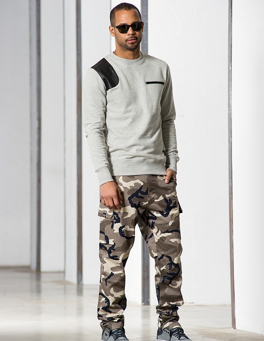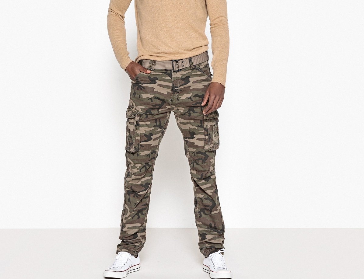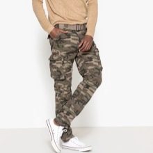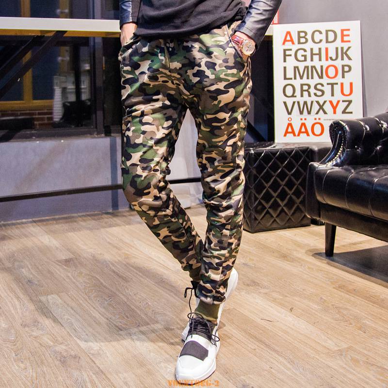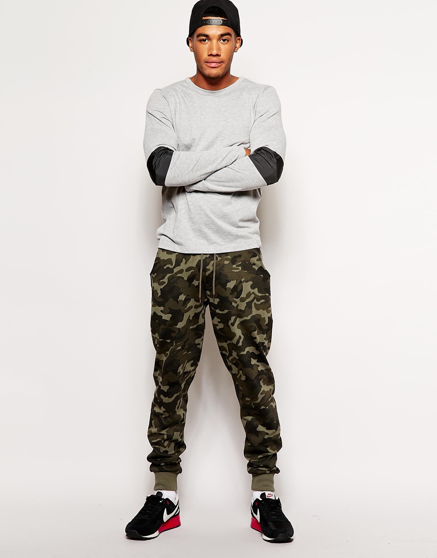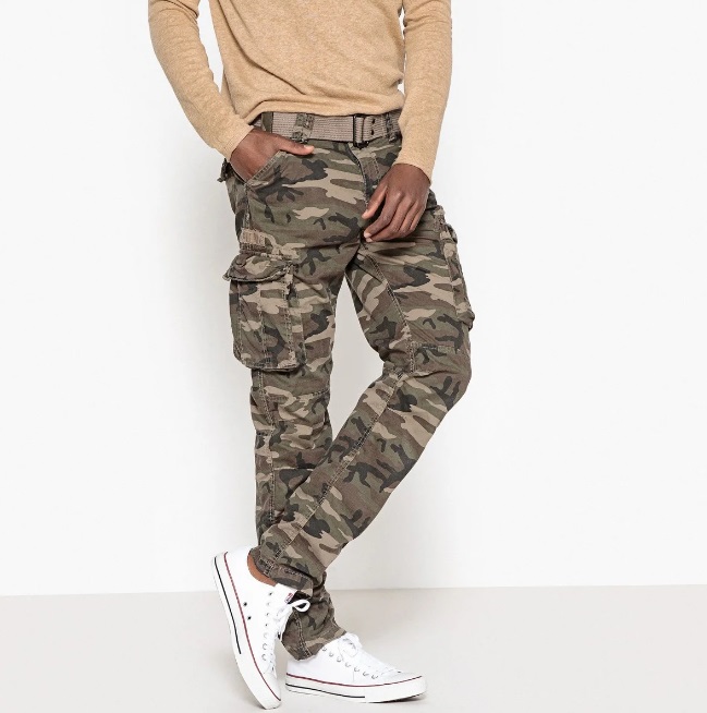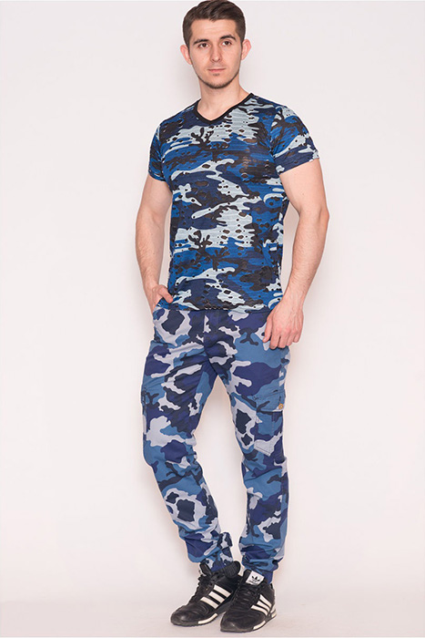 Камуфлажният печат е идеален за спортен стил, не е изненадващо, че дизайнерите редовно пускат дрехи във военния стил. Принципите на такива модели са свобода, комфорт. Панталоните могат да бъдат прави, със или без ластик в долната част, и свободни. Основното нещо е удобството за спортуване.