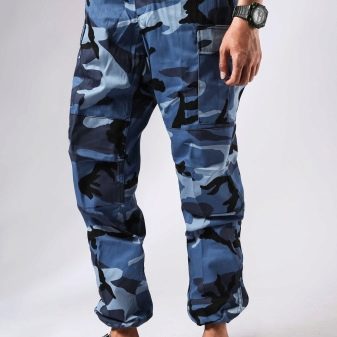 В допълнение към практичността и удобството, съвременните мъже също оценяват значимостта на тенденциите. Затова дизайнерите редовно пускат колекции от модерни панталони, в които са представени голямо разнообразие от модели. На първо място, камуфлажните панталони са разделени на летни и затоплени. Летните се шият от леки материи - памук, вискоза, трикотаж, лен. Моделите за зимата и студеното извън сезона, в допълнение към основната плътна тъкан, често са оборудвани с допълнителен слой изолация. В това си качество се използват синтепон, руно, холофибър.