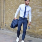 Запомнете - десните панталони не са вързани в буйни гънки на обувката.