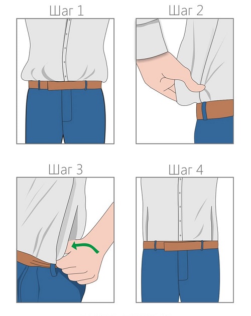 Този метод е подходящ само за стройни мъже, на които дрехите стоят добре. Моля, обърнете внимание, че не можете да пъхнете риза в бельото си и след това да облечете панталони.