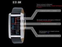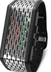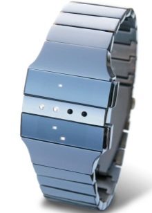 - Ръчни часовници с три вертикални ивицисъстоящ се от 12, 5 и 9 крушки. Всеки ред съответства на часове, минути и секунди. Над крушките е ред от числа от 1 до 12. Сравнявайки стойностите на 3 реда, можете да разберете часа. Такива мостри се отличават със своя изискан външен вид, те са много по -лесни за "четене".