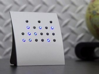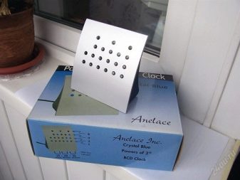 Бинарният часовник има същия вид като обикновения циферблат. Но има една важна подробност - времето се показва върху него с помощта на двоично кодиране. Числата тук са криптирани под нула и единица. Подобна техника се използва от програмистите за генериране на код на компютърни езици. Както бе отбелязано по -горе, дизайнът на циферблата се състои от трептящи и угасващи лампи.
