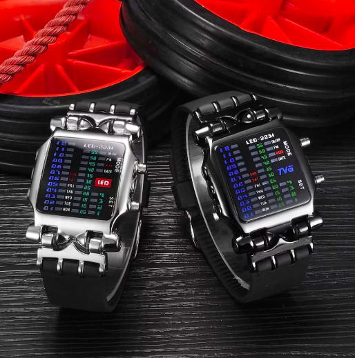 Технологичното развитие на бинарния модел беше предшествано от производството на часовници с LED екранобаче тези прототипи бяха големи и с електронни светодиоди. Последният по -късно заменен вакуумни тръби в механизма въпросните часове.