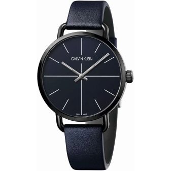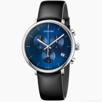 - CK Iven. Солиден модел, направен в стила на минимализма. Има тъмносиня каишка от естествена кожа, минерално стъкло. Аксесоарът също е водоустойчив и може да издържи до 3 бара. Продуктът е с висококачествен кварцов механизъм. Каишката може да се регулира, ако е необходимо.