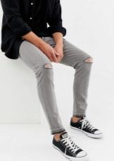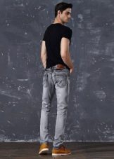 Сивите мъжки дънки изглеждат доста спокойни и дискретни. Този цвят е лесен за комбиниране с дрехи от спокойни и по -ярки цветове и нюанси.