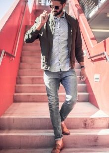 Изтърканите модели изглеждат оригинални с кожени якета в черно или кафяво. За по -топло време е подходящо дънково яке в сиво или в друг нюанс.
