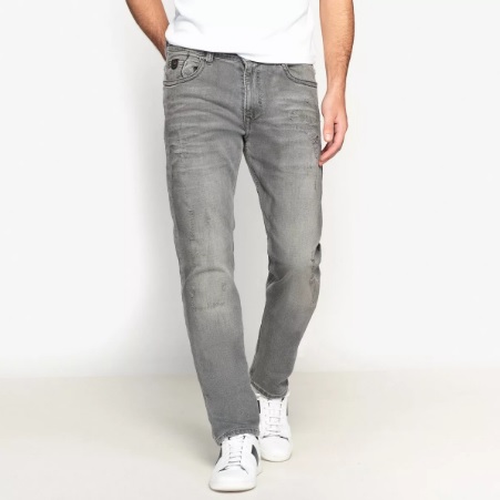 За производството на сиви дънки се използва трайна памучна тъкан, но е по -добре да се купуват модели със синтетични добавки, тъй като естественият памук може да се свие след първото пране.