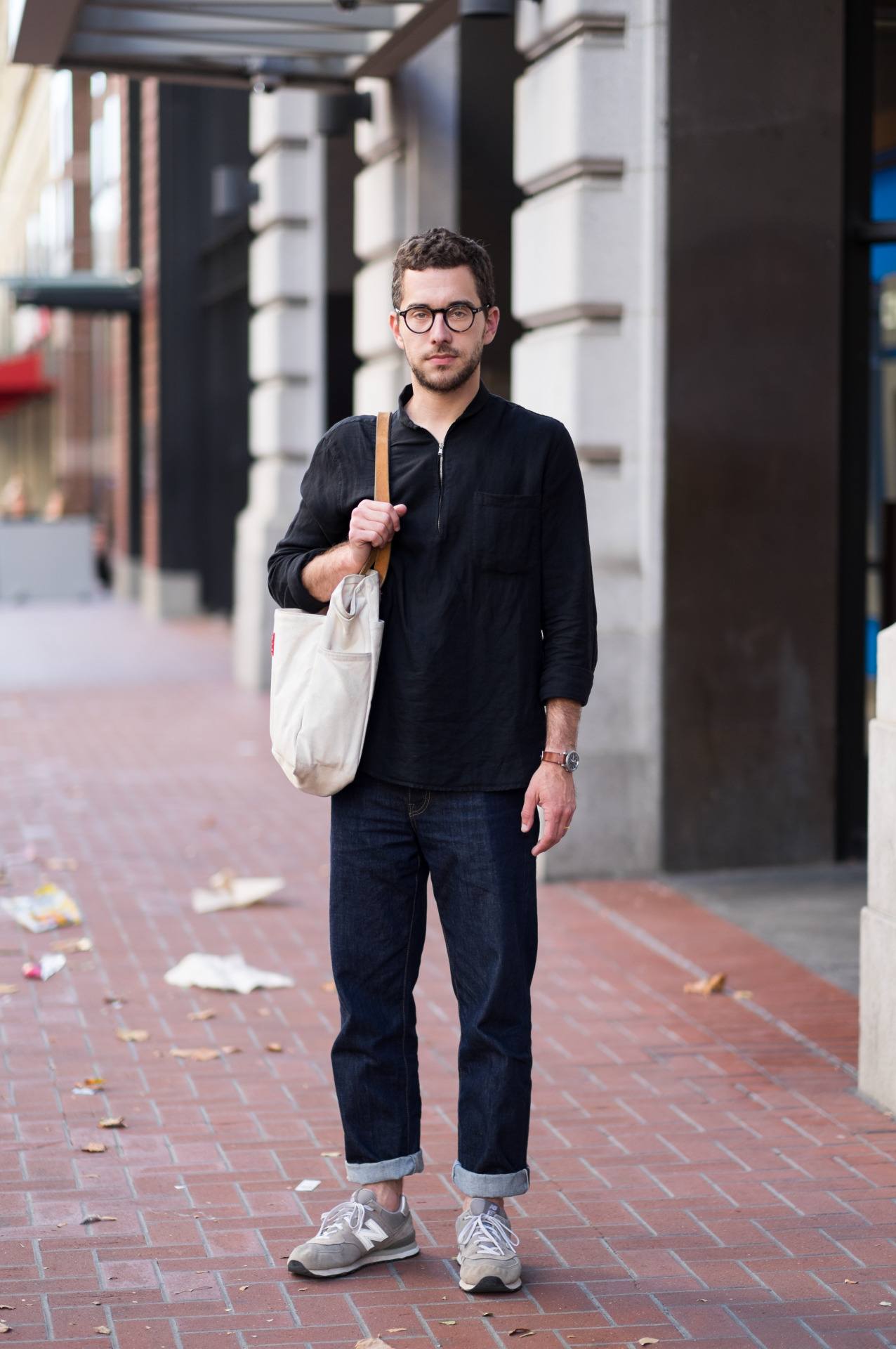 - Лаконичните тъмни дънки с маншети, тъмна риза и модерни кецове създават доста елегантно трио.