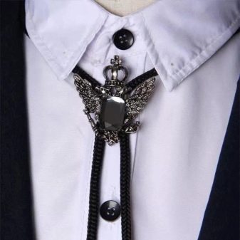 Боло вратовръзката изглежда много стилно, така че ансамбълът с неговото участие трябва да бъде избран много внимателно. Така, ако планирате да носите класически костюм от три части, тогава е по-добре да откажете дантела... Въпреки че с чифт панталони обикновено ще изглежда доста свежо и оригинално.