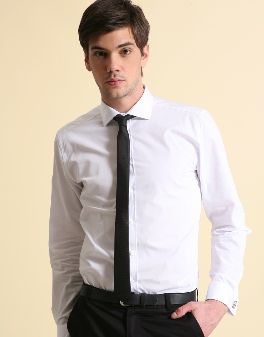- застанете пред огледало, повдигнете яката на ризата си, поставете вратовръзката си под нея с грешната страна на ризата;