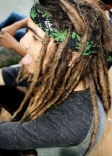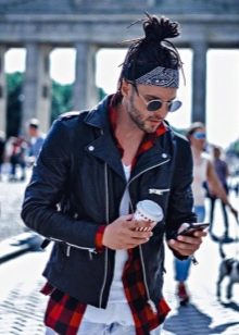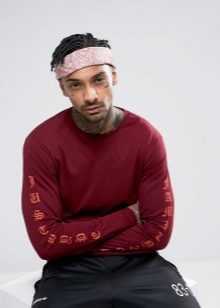 Най -екстравагантният външен вид може да бъде създаден чрез комбиниране на лентата за глава с други аксесоари. Така че, шапка и забрадка около врата веднага ще привлекат вниманието на другите, а бандана и слънчеви очила ще направят образа брутален и непокорен.