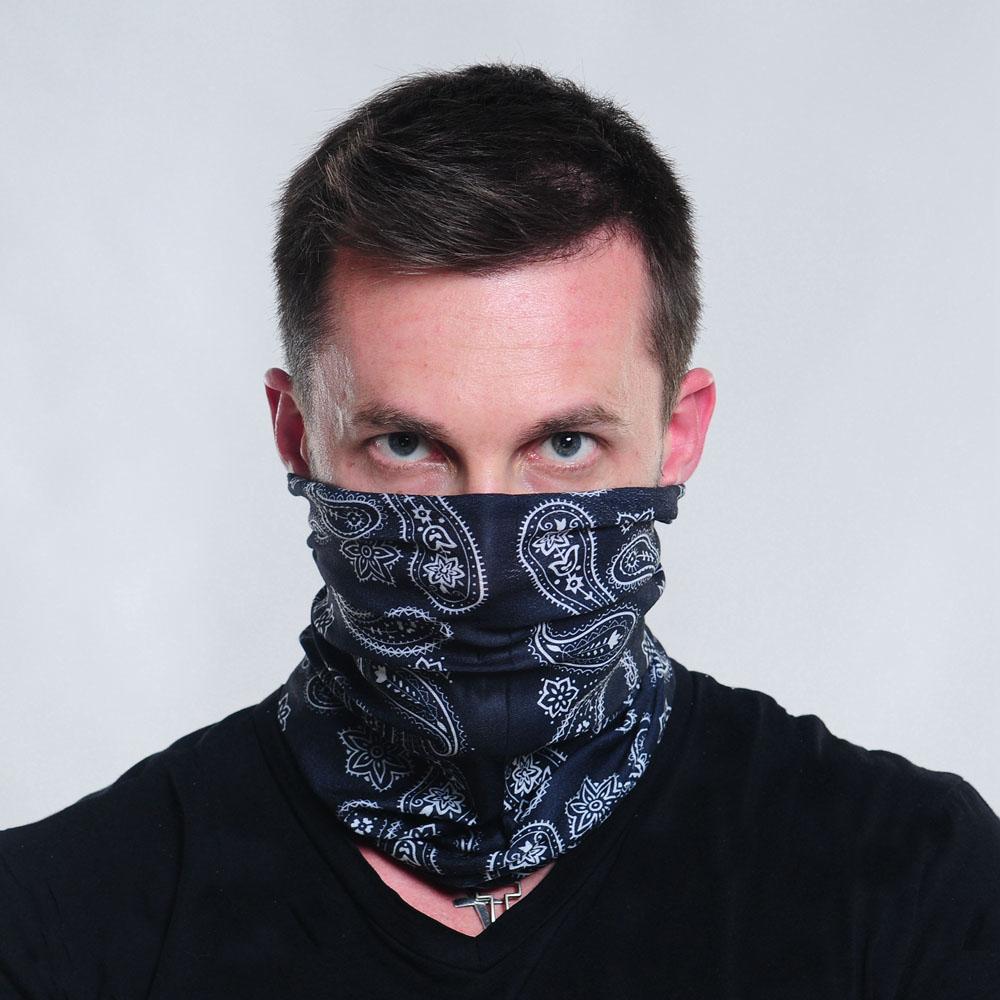 Мъжете носят такива аксесоари не само на главата си. Шалчета, бандани и панделки се носят около врата, на ръката и дори на лицето под формата на маска. Понякога има определено значение.Лентата за глава на ръката на моториста показва, че неговият приятел, за когото тъгува, е починал. Шал под формата на маска на лицето показва вероятни престъпни намерения или действия, където трябва да останете анонимни. Злобата може и да отсъства, но желанието да бъдеш зловещ в този опасен и враждебен свят често се изразява по този начин.