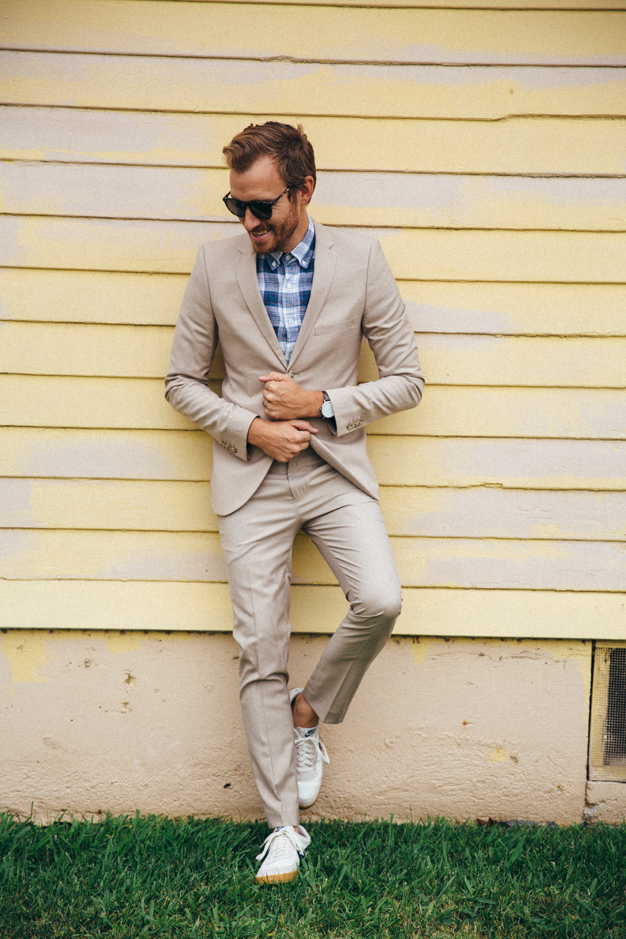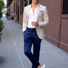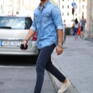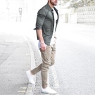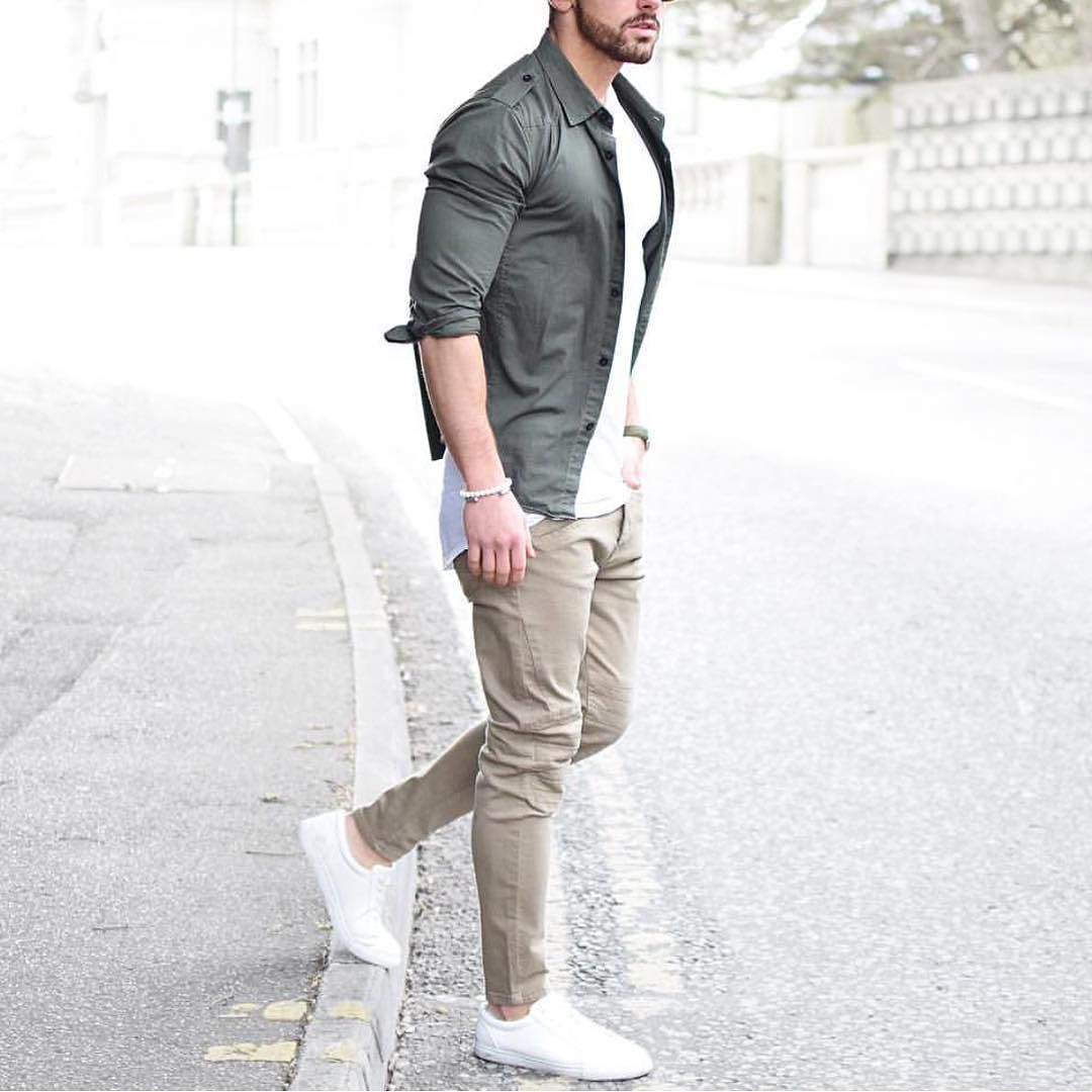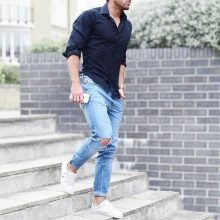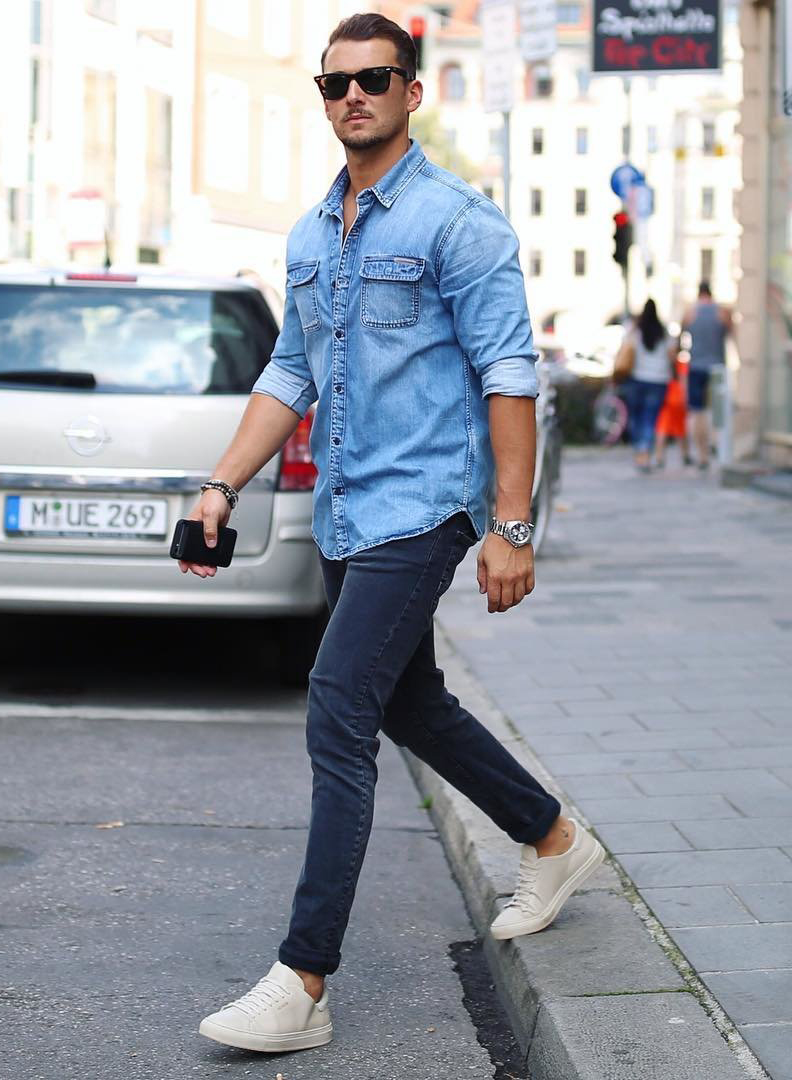 Можете да допълвате офис визията с риза с яка или поло, леки панталони. Дънкови ризи се носят с бели маратонки.