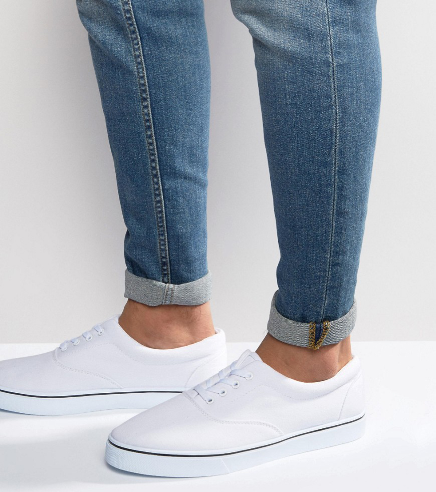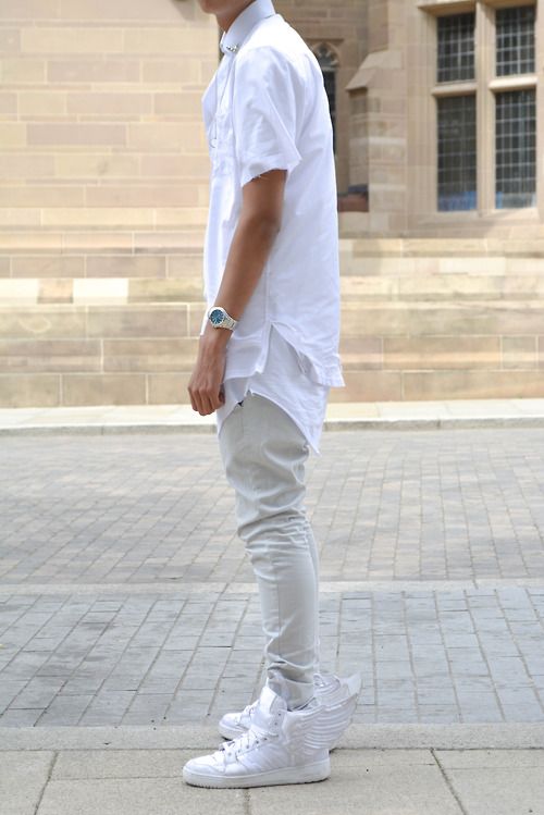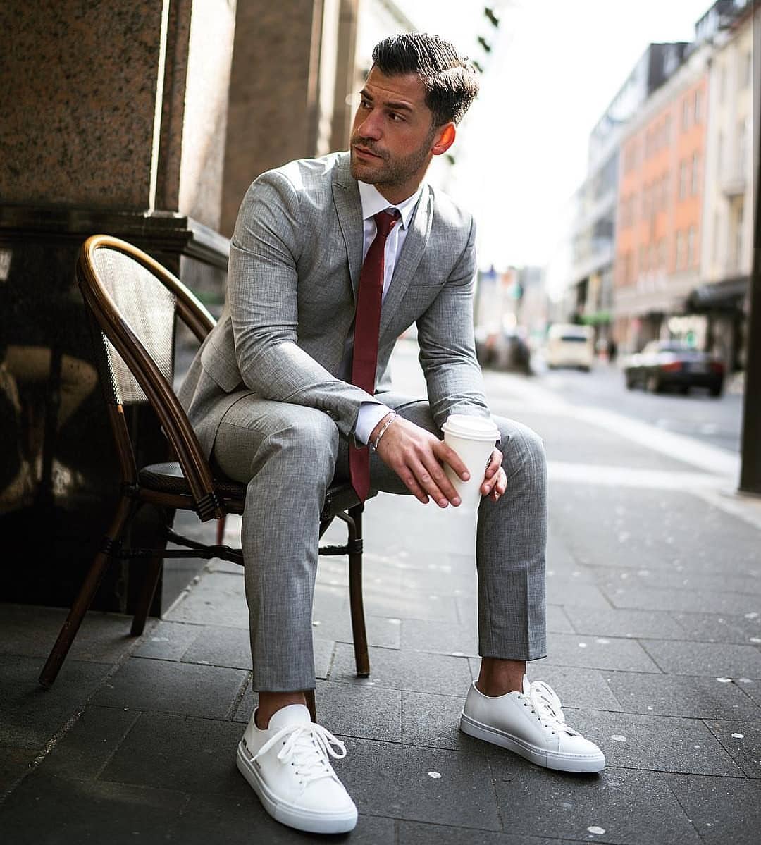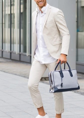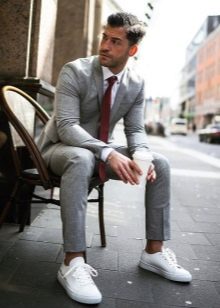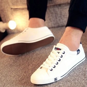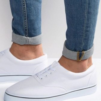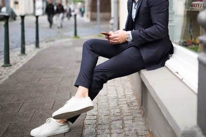 Белите обувки за тенис се носят не само с дънки, но и с панталон. При класически панталони такива обувки могат да се носят, ако допълнителните аксесоари се играят правилно. Мъжете могат да носят светли кецове с панталони във военен стил или карго панталони, плетени джогингери.
