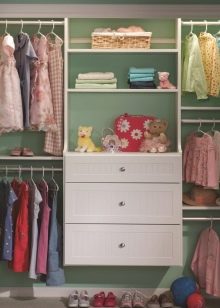 Дизайнът на стаята зависи от това какво точно ще се намира там. Дизайнът на килера за детето трябва да се поддържа в същия стил като стаята. По -добре е таванът и стените да бъдат леки, така че и без това малка стая да не изглежда тясна. По -добре е да направите детски стелажи за дете в цвят, да осигурите кутии и кутии, където детето ще съхранява всичките си неща, дизайнери, играчки.