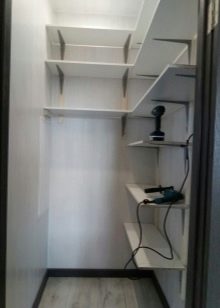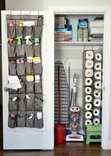 Такива килери могат да намерят своето място в коридора и на балкона. Рафтове и чекмеджета също трябва да бъдат предвидени за инструменти. Тогава винаги ще бъде възможно да намерите всеки инструмент, когато имате нужда от него. Тук може да се отдели и ъгъл за различни инструменти, които могат да бъдат полезни в домакинството: четки, метли, кофи, почистващи препарати.