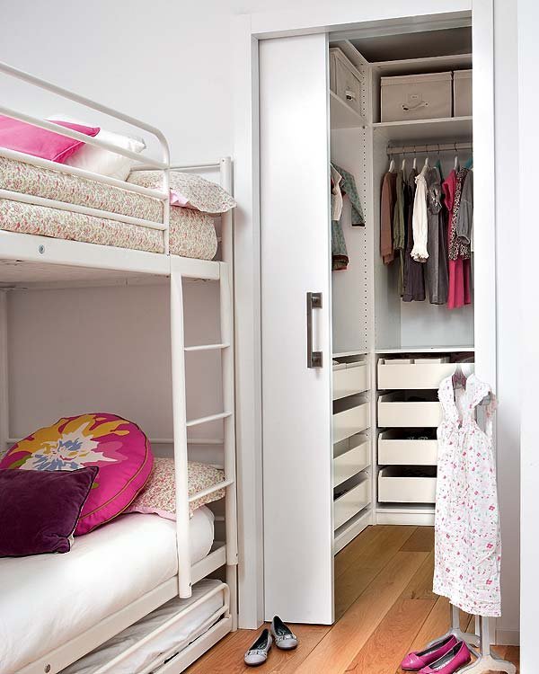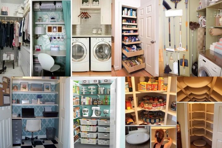 В коридора към такава стая можете да скриете връхни дрехи и обувки, а коридорът винаги ще изглежда спретнат. В спалнята можете да оборудвате рафтове и закачалки за съхранение на неща вътре в килера. В килера на децата ще бъде възможно да се поставят всички играчки и други неща, от които детето се нуждае, например спортни принадлежности. Ако оборудвате мини-килер на балкона, можете да съхранявате инструменти там.