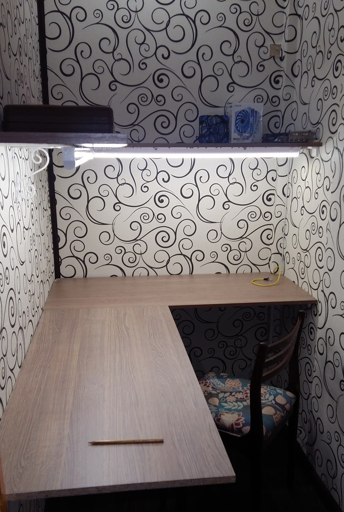 - Дори в по -компактно пространство можете успешно да оборудвате работно място. И този пример е потвърждение за това. Работата тук е много лека и удобна.