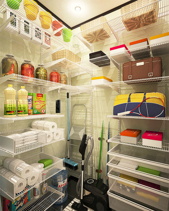 Изборът на всички тези елементи зависи от това какви неща ще бъдат разположени в килера: дрехи, инструменти, храна или играчки. Когато подреждате рафтове, стелажи, шкафове, те могат да бъдат третирани със състав, който предотвратява образуването на мухъл и плесен.