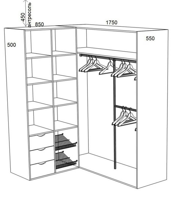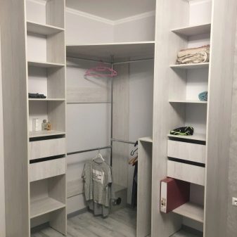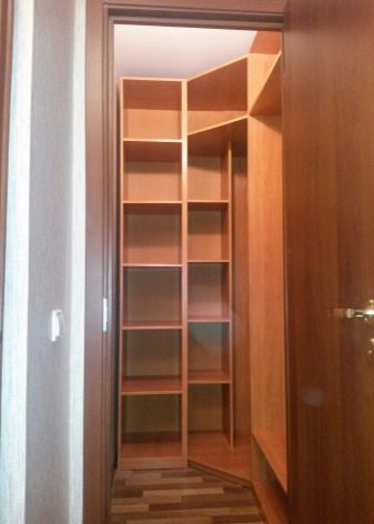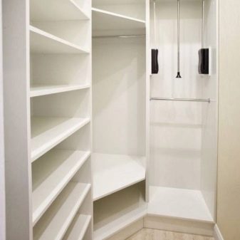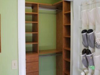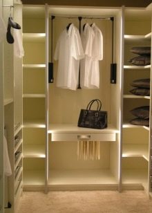 Важно! Когато оборудвате съблекалнята в килера, не забравяйте, че гардеробът за връхни дрехи е най -добре поставен в далечния ъгъл.
