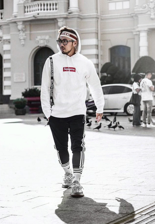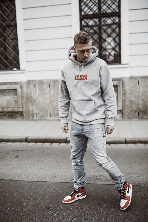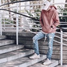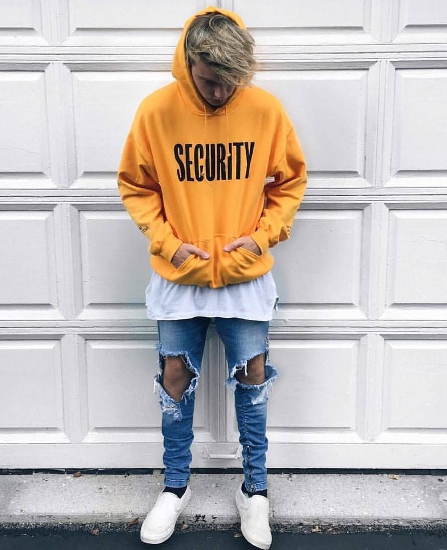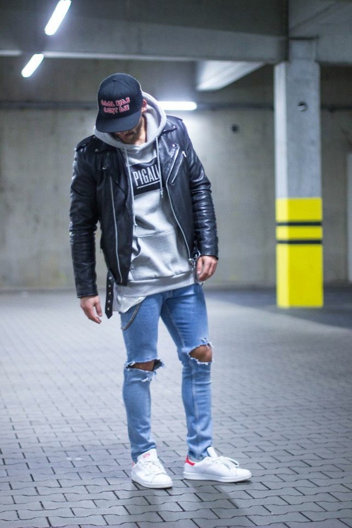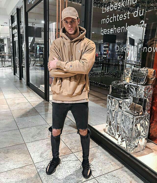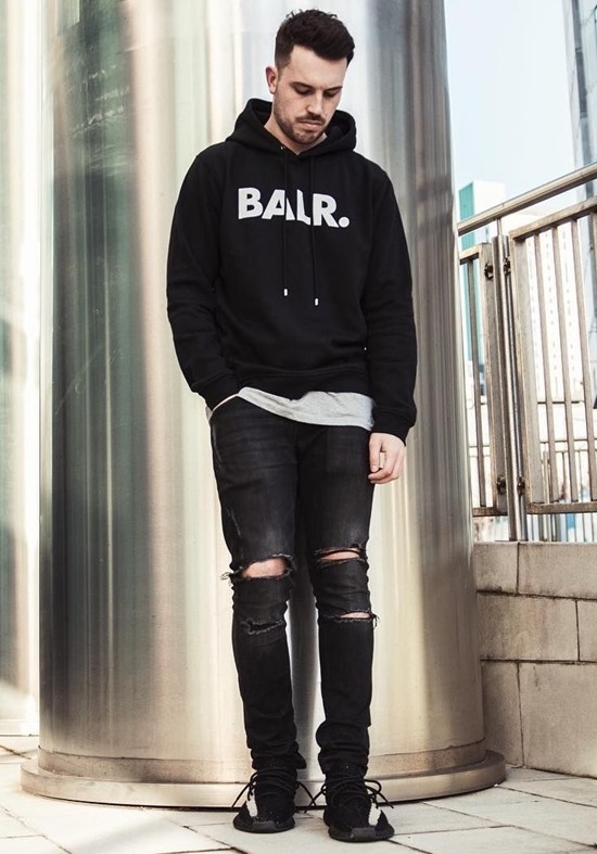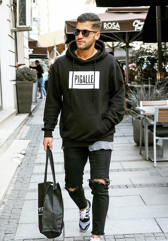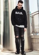 Готин комплект се състои от маркови качулки и скъсани дънки.