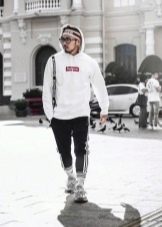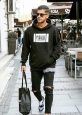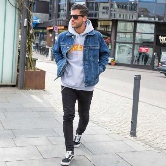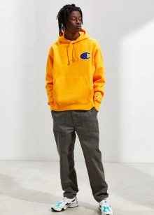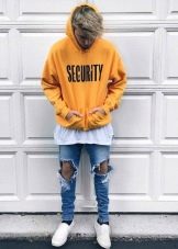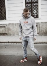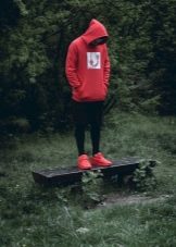 Качулката може да се носи навсякъде и с всичко. Класическият вариант е комбинация с дънки. Този тандем изглежда ефектно с панталони от напълно различни стилове: кльощави, със звънче и гаджета. Можете да изберете всякакви обувки по ваш избор в комплект за тях: за разходки и часове са подходящи маратонки и кецове, за младежко парти - груби ботуши или обувки.