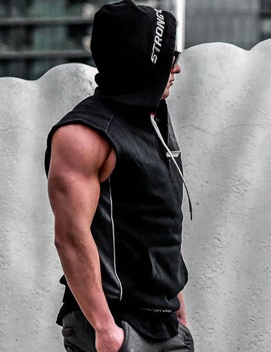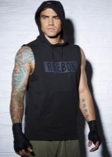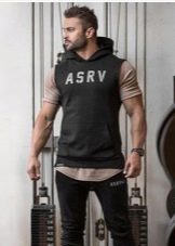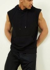 - Без ръкави. За летния период жилетка с качулка е много актуална. Това е доста оригинален елемент от мъжкия гардероб и е в голямо търсене сред младите хора. Тайната на този успех е проста - качулките без ръкави са идеални за спорт. През лятото можете да го поставите директно върху голото си тяло, а в хладните дни можете да го добавите с водолазка с подходящ нюанс.