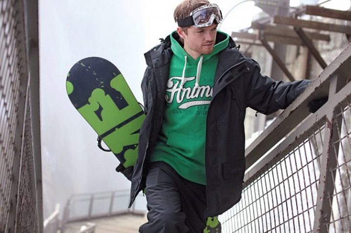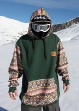 - За сноуборд. Такива модели се отличават с яркостта на цветовете и цветните щампи, но най-важното е дължината: тя варира от средата на бедрото до коленете. Разрезът е хлабав, което позволява на спортистите да изпълняват дори най -трудните пируети.