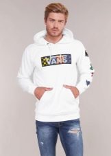 - Бял. И, разбира се, универсални цветове, които ще се впишат перфектно във всяка визия. Такива качулки често се допълват с черни щампи или орнаменти от многоцветни ивици, въпреки че едноцветните модели също са търсени на пазара.