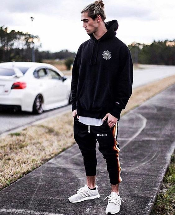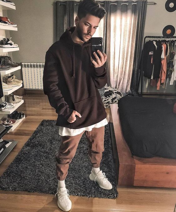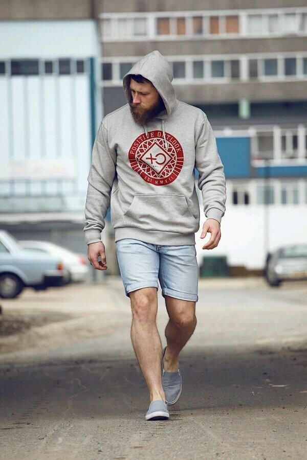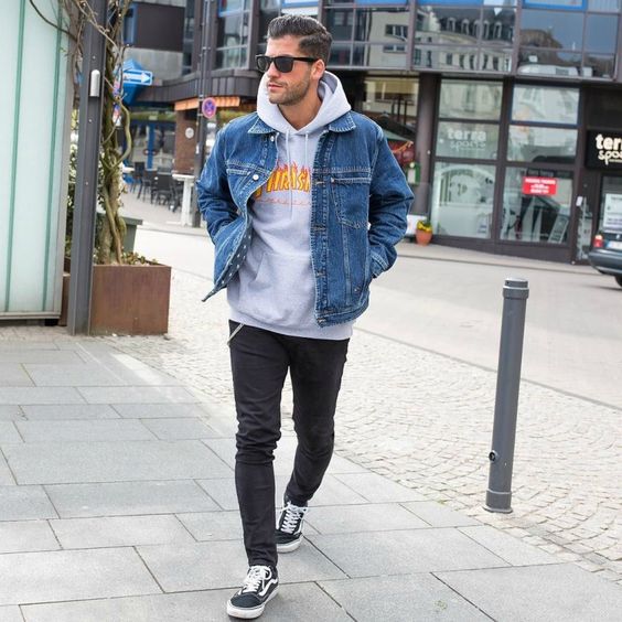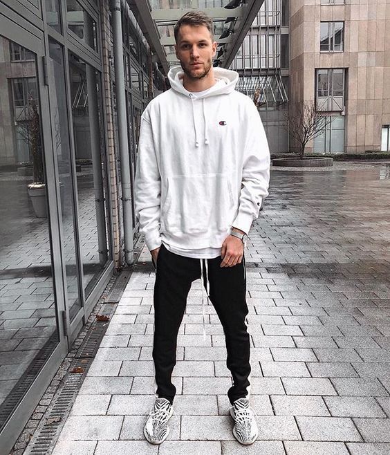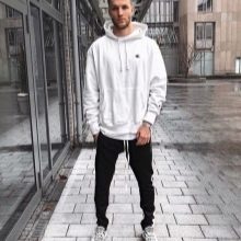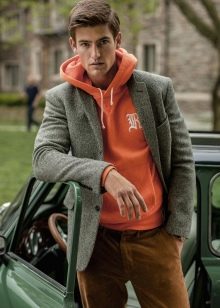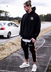 Мъж може да носи качулка не само с дънки, но и с товар, чинос и джогинг, дори класическите панталони ще са подходящи, само ако не сте ги заели в чифт костюм.