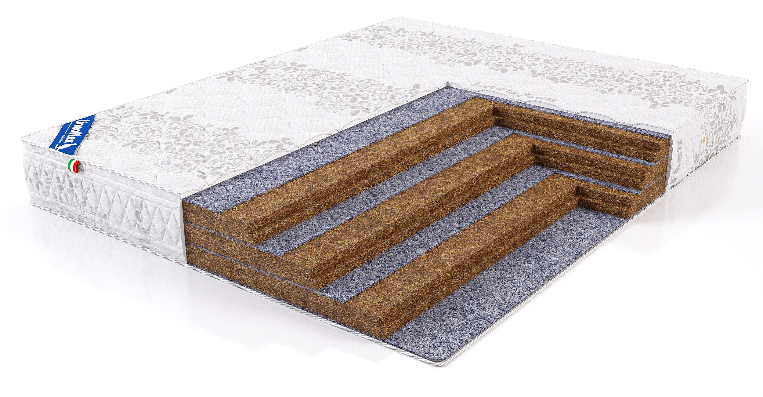 Като пълнители се използват латекс и кокос. По-скоро влакна, импрегнирани с латекс. Тази комбинация не е алергична и избягва натрупването на статично електричество. Термично залепената дъска е доста надеждна и стабилна. Повърхността е твърда и еластична едновременно.
