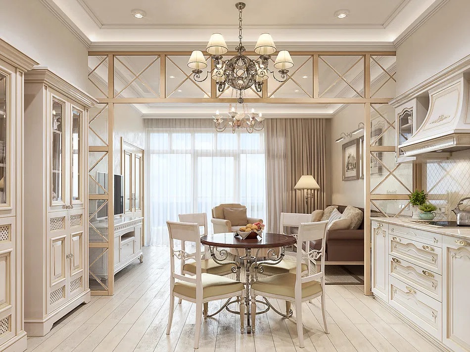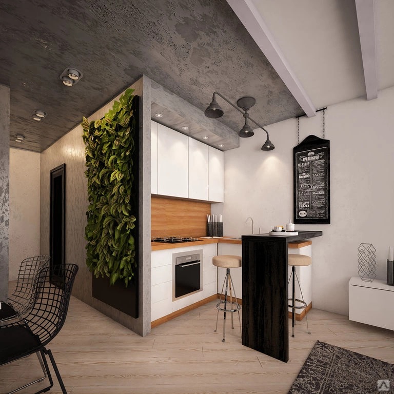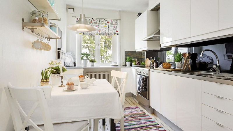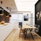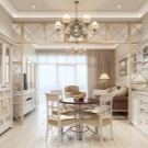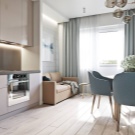 Кухнята в такива апартаменти има малка площ, което значително усложнява процеса на интериорен дизайн. Тук няма да работи, ако използвате твърде големи мебели или много декоративни елементи. Най -добре е да декорирате стаята в светли нюанси, както и да използвате различни огледални повърхности, които перфектно пропускат светлина и допринасят за визуално увеличаване на пространството.