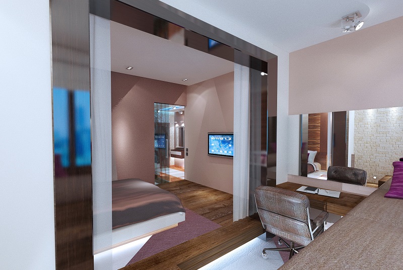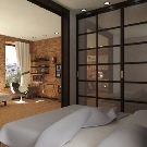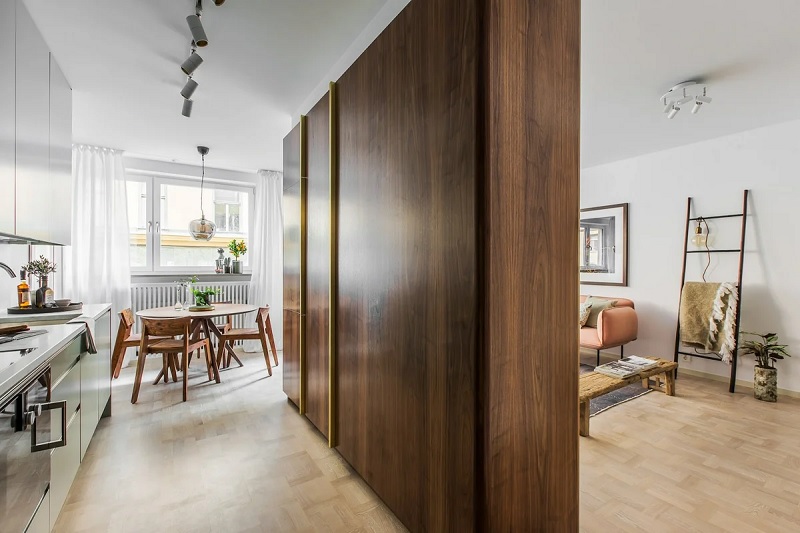 Но в двустайните апартаменти такива промени са изключително важни, тъй като ви позволяват да получите необходимото количество свободно пространство. В процеса на зониране е най -добре да използвате леки или прозрачни прегради, които не абсорбират използваемата площ и визуално разширяват пространството.