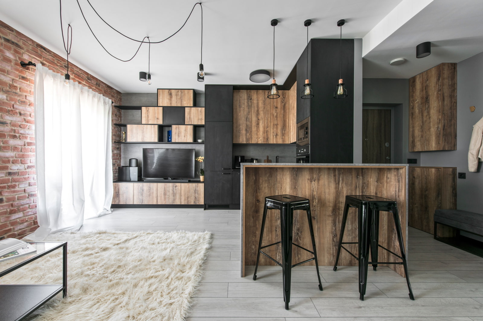 Таванско помещение. Напоследък именно тази стилистична тенденция е много популярна сред мъжете. Особеността на таванското помещение е неговият градски характер, голямо количество свободно пространство и използването на уникални декоративни елементи. Собственикът на помещенията получава големи възможности по отношение на декорацията, защото може да украси стените с тухла, да използва почти всякакви осветителни тела и мебели. Отлично решение биха били модулните мебели, които не само имат атрактивен външен вид, но и могат да се похвалят с невероятната си функционалност.