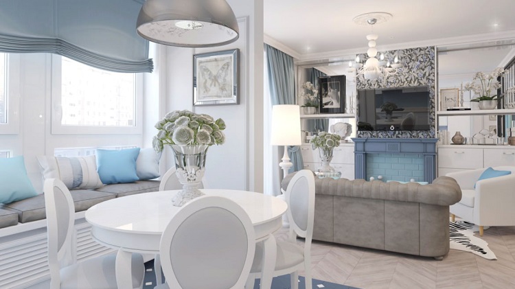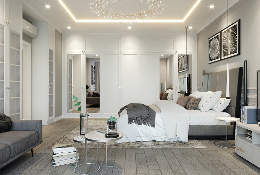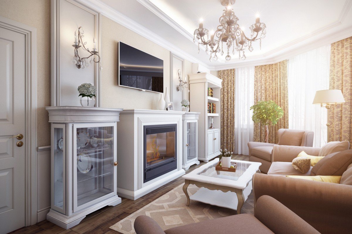 Неокласицизъм. Тази стилистична тенденция е много популярна поради симетрията на формите и възможността да се използват различни модели. Въпреки това интериорът е лек и модерен. За разлика от класиката, тук не се използват извънгабаритни мебели и можете да изберете цвета въз основа на собствените си желания. Дизайнерите отбелязват, че бялото би било идеалният цвят за неокласицизма, но ако е необходимо, можете да дадете предпочитание на сивите тонове. Биокамина може да се използва като централен елемент в този интериор, а в спалнята огледалните врати на шкафа ще бъдат отлично решение, което допринася за визуалното разширяване на пространството.