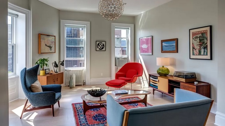 Ретро. Въпреки факта, че тази посока се появи в средата на миналия век, тя все още е много популярна и търсена. Характерна особеност на интериора, декориран в ретро стил, е наличието на цвят мента. Освен това тук можете да използвате разнообразие от студени нюанси, които ще изглеждат перфектно с модулни мебели. Когато декорирате стени, можете да използвате графични модели, но интериорните елементи трябва да бъдат напълно лишени от декоративни елементи.