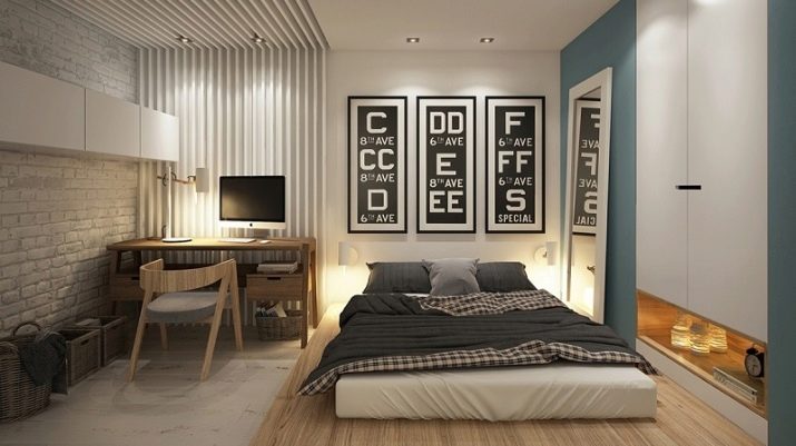 За да се спести свободно пространство в спалнята, над леглото могат да се поставят различни шкафове и отворени рафтове.Това е особено вярно, ако в тази стая има и работна зона. Бюрата са най -добре поставени близо до прозорец, тъй като те могат да получат много естествена светлина, което може да повлияе положително на настроението и производителността.